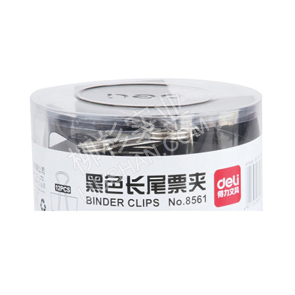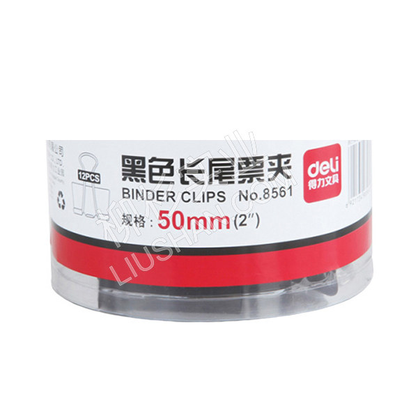 DELI/得力 黑色长尾票夹 8561 50mm 黑色 12只 1筒